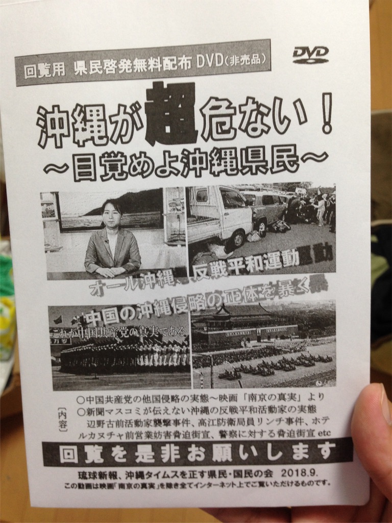 このDVDを沖縄県民家庭に配りまくってると思うと相当に本気度が高い。だれが何のために送っているのか